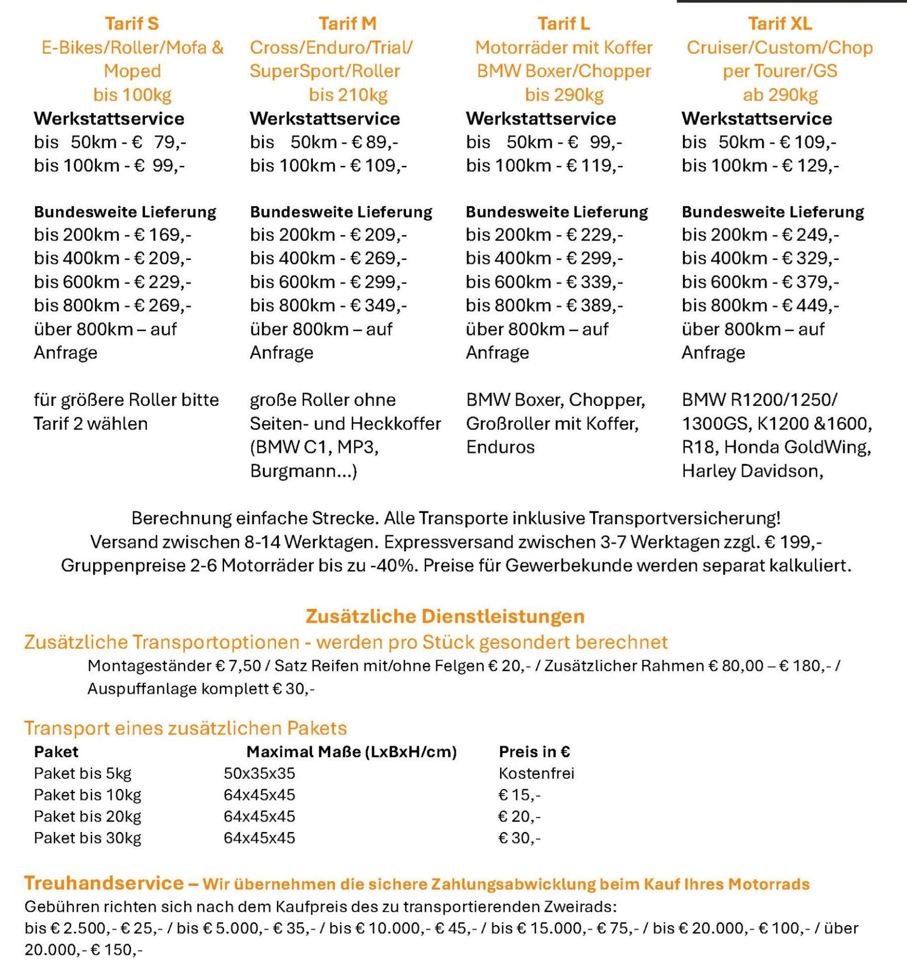 Preise verstehen sich inkl. der gesetzlichen MwSt. & Transportversicherung zzgl. Maut- & Fährkosten. Abholung & Lieferung nur innerhalb Deutschlands. Es gelten unsere AGB zur Beförderung von Sondergüter. Stand im Dezember 2025